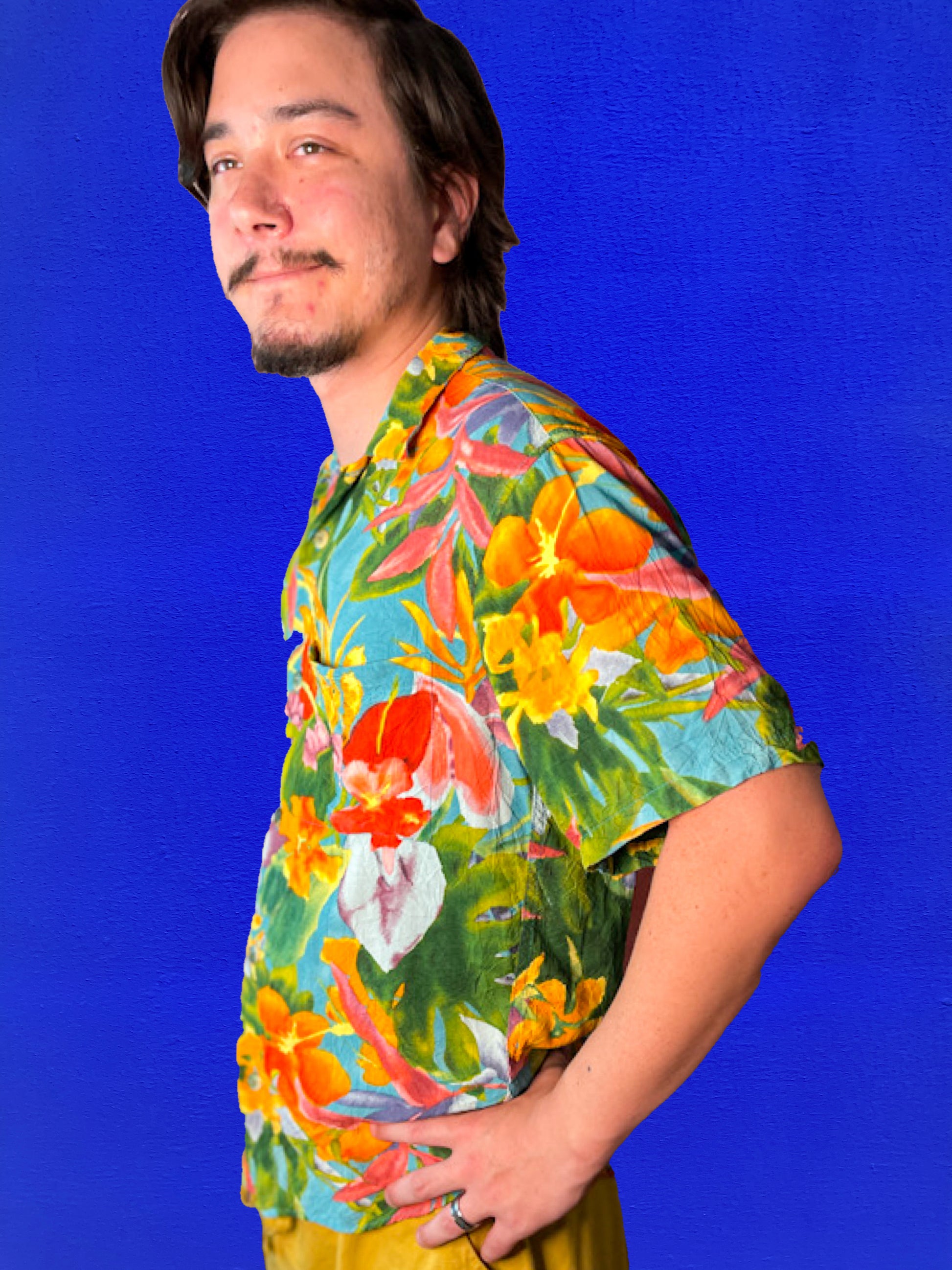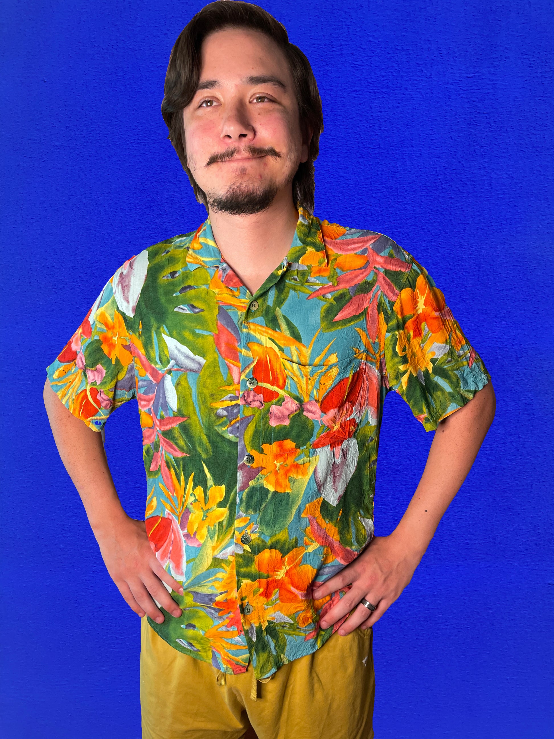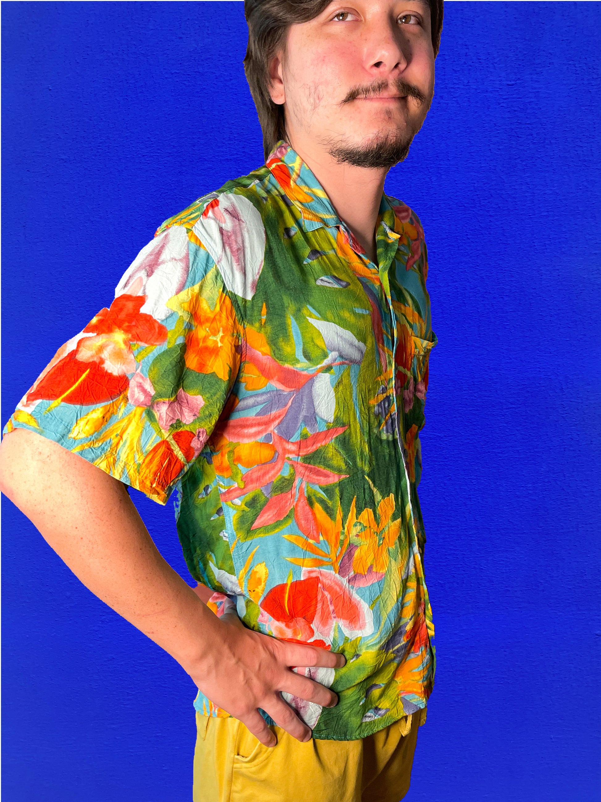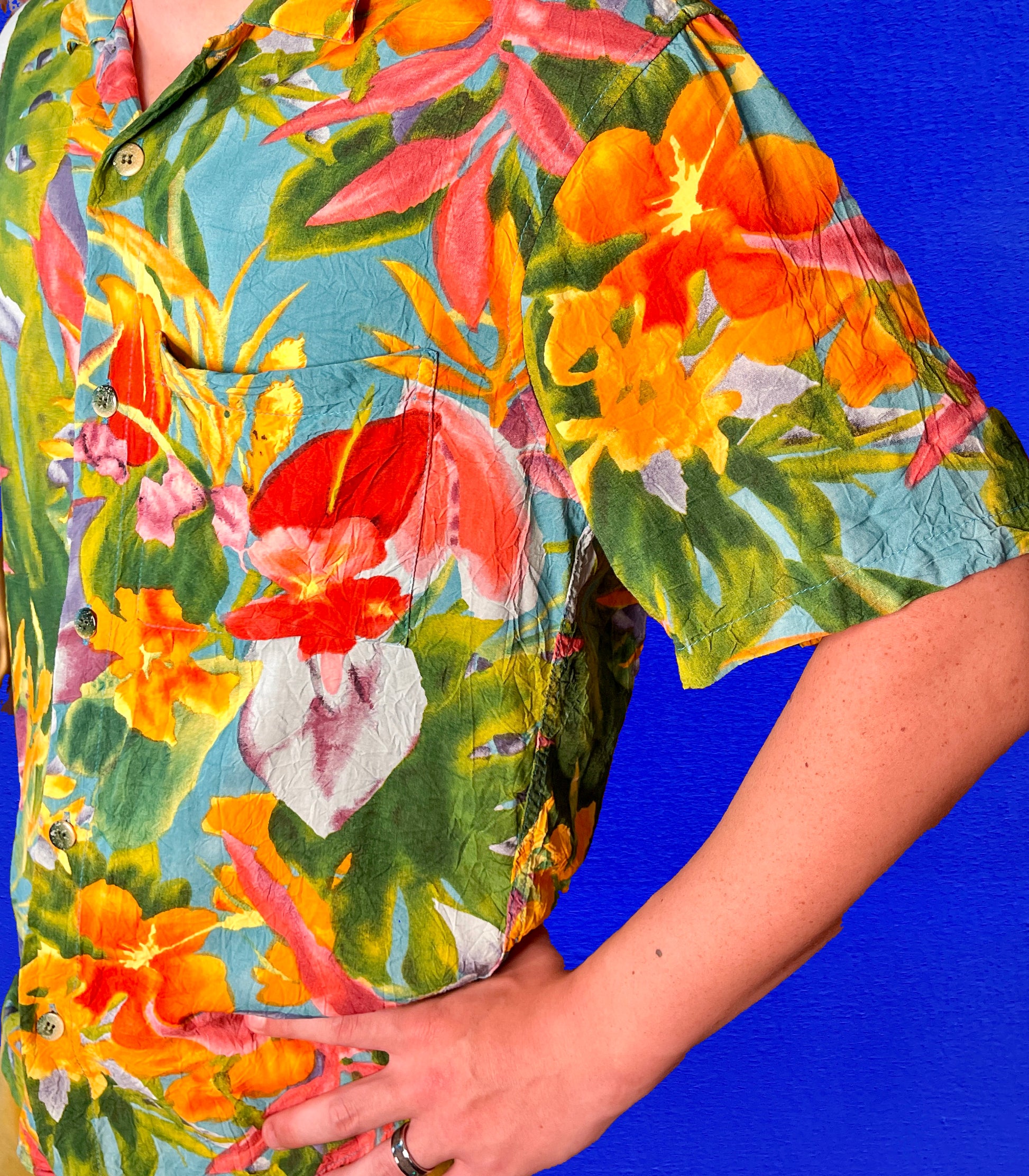 Vintage 2000s Jams World watercolor tropical dress shirt in signature crinkle fabric