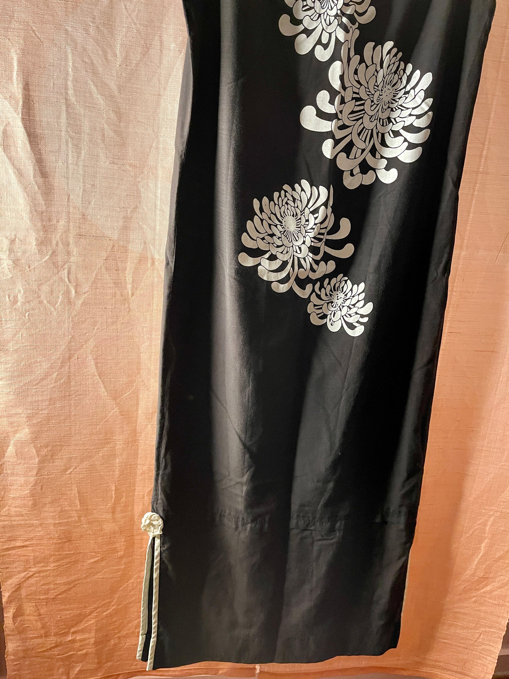 Details: Slits on both sides with one chrysanthemum embellishment on the left side, chrysanthemum, and button closures on both shoulders