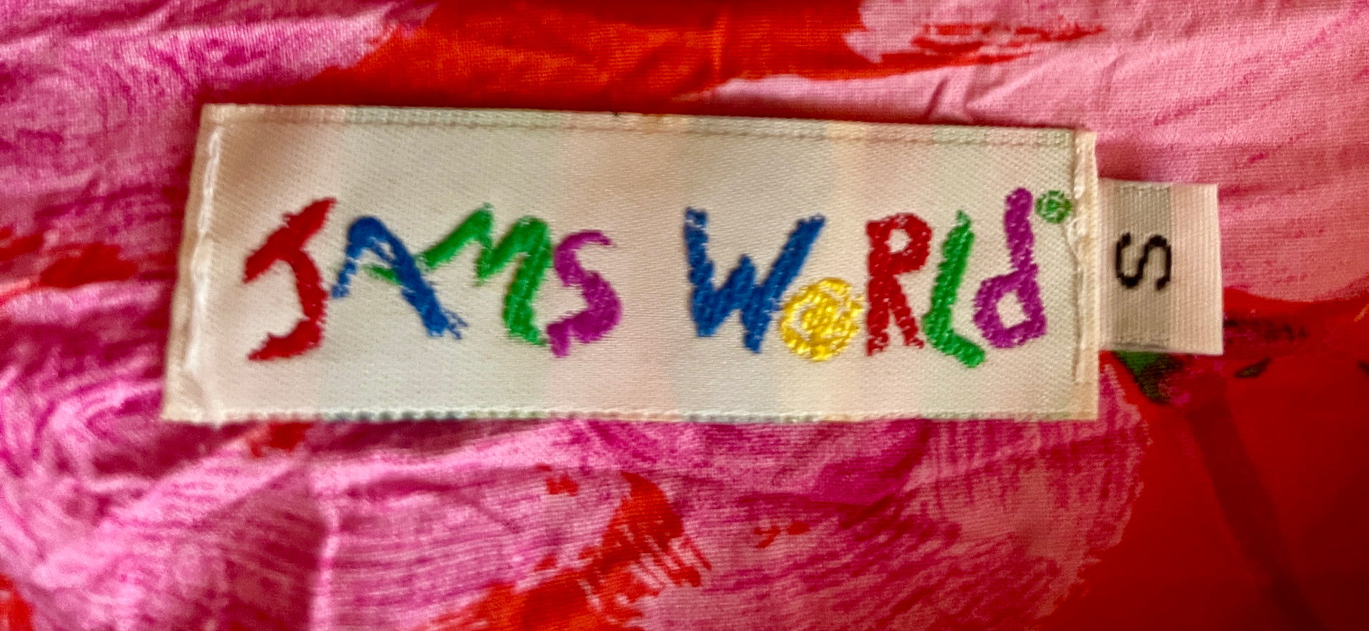 Vintage Jams World circa 1990s with a cute button side-slit detail and front button pockets. Made in Hawaii.