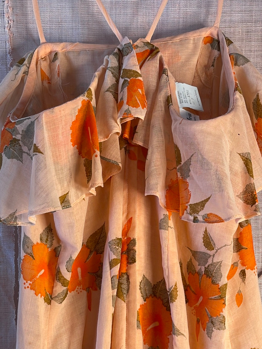 Fabric is free flowing and unlined, 55% polyester & 35% combed cotton